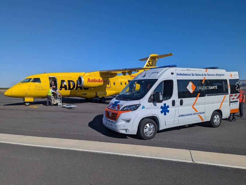 Les équipes Ambulances Côte d’Azur, membres du réseau Urgence Santé, ont récemment assuré la prise en charge d’un patient au départ d’un avion sanitaire de l’ADAC (Aero-Dienst).